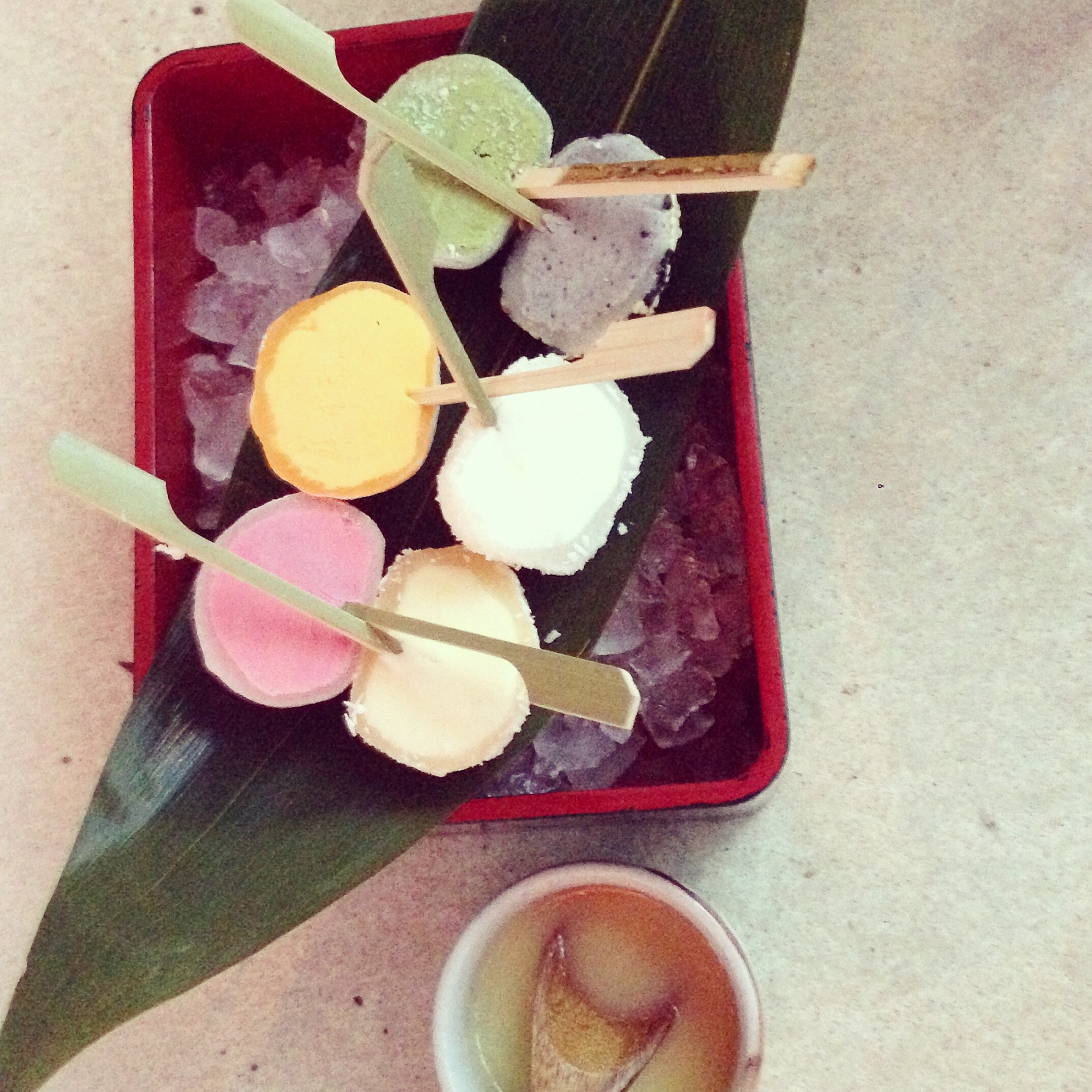 The rice cakes filled with ice cream and hot white chocolate sauce are delicious. Out of the six different flavors the black sesame and coconut ice pops were outstanding.
